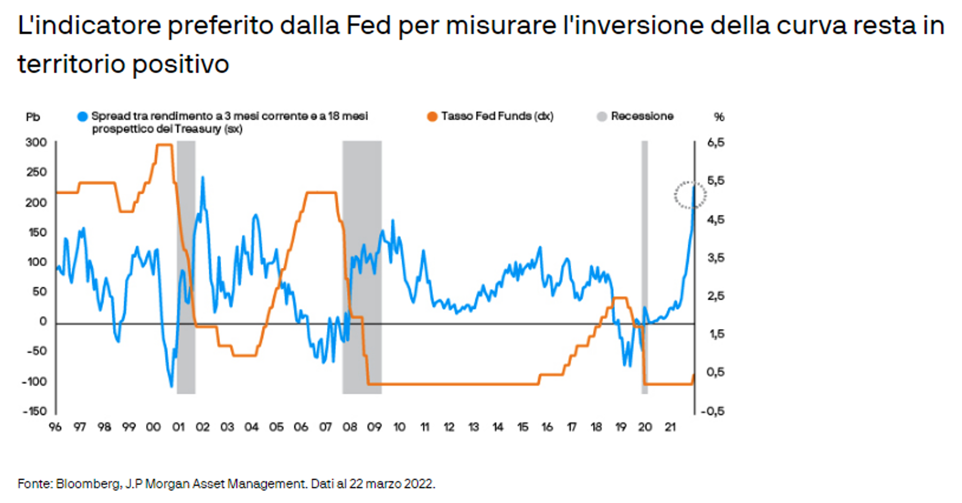 La ripresa della crescita economica, i maggiori livelli di inflazione e le politiche monetarie più restrittive su scala globale hanno innalzato la temperatura dei mercati obbligazionari mondiali nel 2022. In effetti, gli ultimi avvenimenti hanno fatto sparire quasi completamente, in tutto il mondo, lo stock di debito a rendimento negativo, portandolo da USD 10.700 miliardi a inizio anno a soli USD 2.900 miliardi al 22 marzo 2022, il valore più basso da metà 2015. I mercati statunitensi hanno fortemente risentito dell’ondata di vendite obbligazionarie: i Treasury statunitensi hanno subito le peggiori perdite della storia, spingendo il rendimento decennale al 2,3%, il livello massimo da maggio 2019. I rendimenti salgono, ma gli investitori focalizzeranno probabilmente l’attenzione sull’andamento della curva. Storicamente, un’inversione della curva dei rendimenti rappresenta un indicatore anticipatorio che segnala l’inizio di una politica restrittiva e l’approssimarsi di una fase recessiva. Al momento la curva dei rendimenti a 2 e 10 anni si è appiattita, ma è rimasta in territorio positivo, segno che le Banche Centrali possono continuare a innalzare i tassi. Un altro indicatore, che è anche lo strumento preferito dal presidente Jay Powell, è lo spread tra il Treasury corrente a tre mesi e l’omologo forward a 18 mesi. Tradizionalmente, questo differenziale diventa negativo prima di una recessione, ma ora è ancora ampiamente in territorio positivo. Sono pochi i segnali che preannunciano difficoltà su questo fronte nel prossimo futuro. Il recente aumento dei rendimenti obbligazionari ha offerto punti d’ingresso interessanti per specifiche opportunità, soprattutto nei segmenti di migliore qualità dei mercati del credito.