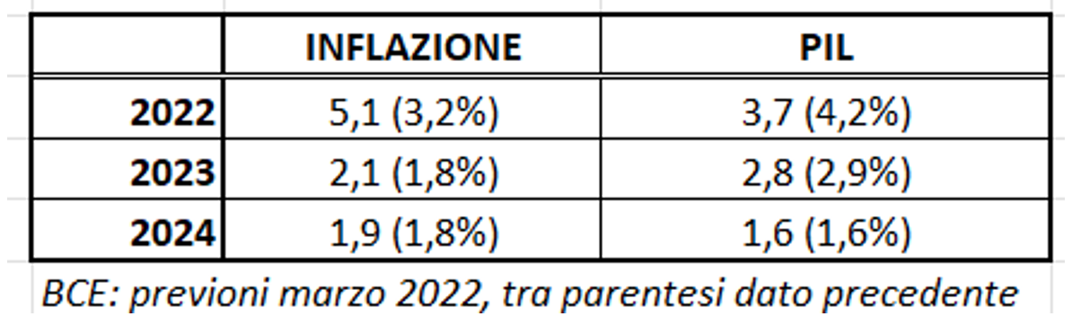 Sul fronte stime su Pil ed inflazione, in questa tabella il quadro aggiornato: