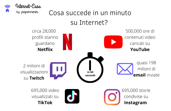 Per meglio comprendere quanto effettivamente la nostra vita digitale impatti sull’ambiente, immagina cosa succede ogni singolo minuto su internet: