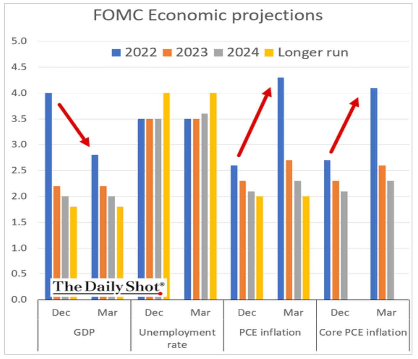Esattamente come previsto, nonostante i rischi finanziari derivanti dal conflitto in Ucraina, la Federal Reserve alla riunione di Marzo ha avviato concretamente il processo di normalizzazione monetaria, alzando il tasso di policy di 25 punti base. Secondo il Presidente Powell la priorità è l’inflazione e per il 2022 il Comitato della FED si attende almeno altri sei rialzi dei tassi. Il dato annuo sulla crescita dei prezzi di Febbraio, comprendente quelli dell’energia, con un +7,9% è ai massimi da 40 anni.