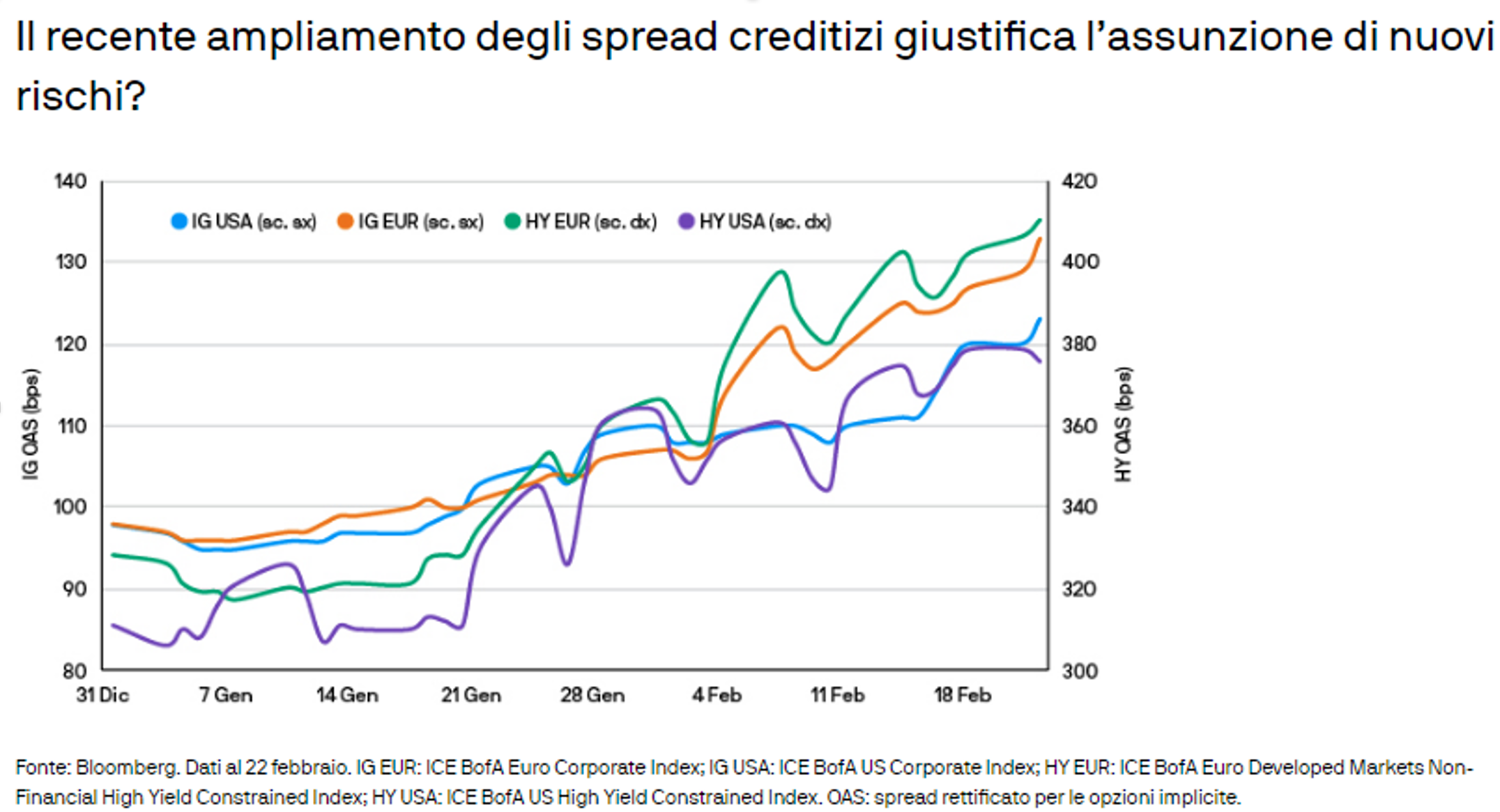 Alla luce dei timori inflazionistici che spingono le autorità monetarie a intervenire, le condizioni di finanziamento dovrebbero inasprirsi per chi ha contratto prestiti. Ciò nonostante, grazie alla solidità dei bilanci societari, continuiamo a guardare con ottimismo ai fondamentali delle aziende. Pur avendo assistito da inizio anno a un aumento significativo degli spread, riteniamo ugualmente che il quadro tecnico (ora caratterizzato da deflussi incessanti e da scarsa liquidità) offra spazio per un ulteriore ampliamento nel breve termine. Pertanto, prima di tornare a investire raccomandiamo di mantenere l’attuale posizionamento e di aspettare che i mercati del credito scontino un maggiore premio al rischio.
