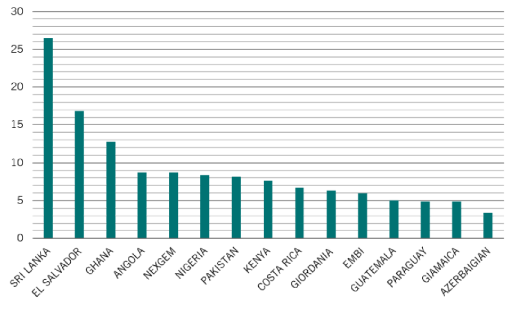 Nel reddito fisso, i mercati di frontiera tendono ad offrire rendimenti reali elevati e la maggior parte del mercato investibile è costituito da obbligazioni sovrane in valuta forte. Le obbligazioni emesse dai Paesi di frontiera hanno rendimenti doppi rispetto a quelle dei mercati emergenti, anche se con rating creditizi più bassi. In questi mercati l’attività degli acquirenti stranieri è generalmente bassa e i rischi sono altamente idiosincratici. I mercati sono dominati da Paesi con emissioni storicamente regolari e le cui obbligazioni presentano un premio di rischio politico e macroeconomico elevato. Gli eventi politici in questi Paesi spesso portano a un comportamento irrazionale dei prezzi delle relative obbligazioni e gli investitori informati possono trarre profitto da questa volatilità (si veda la Fig. 3).