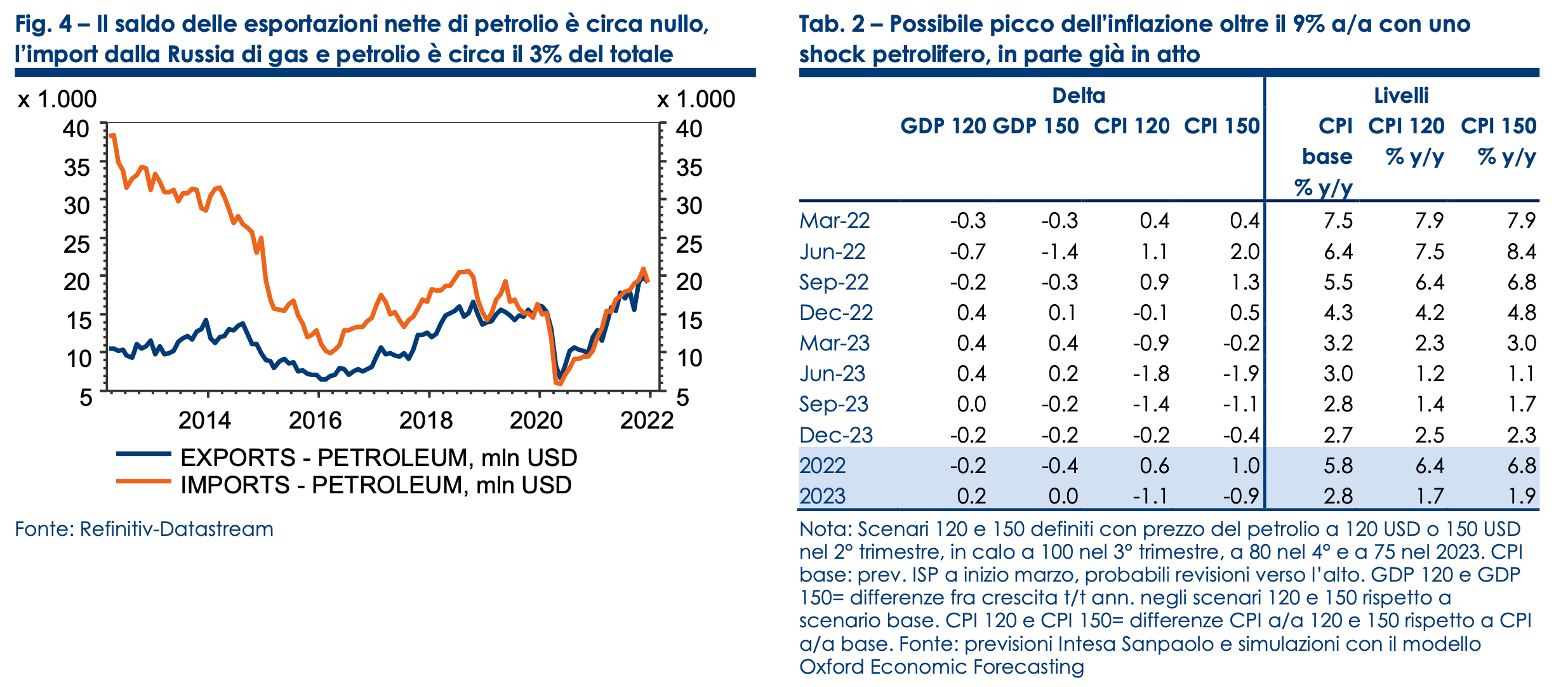 Per quanto riguarda le proiezioni macro, la revisione più macroscopica dovrebbe essere quella dell’inflazione a fine 2022. Alla luce dell’andamento dei prezzi delle materie prime, sotto ipotesi conservative, l’inflazione potrebbe essere rivista di quasi 1pp a fine 2022, verso 4,5% a/a per l’indice headline e almeno 3,5% a/a per il core, con rialzi di qualche decimo per il 2023. Anche il tasso di disoccupazione alla fine del 2022 potrebbe subire revisioni, questa volta verso il basso, verso il 3%, ipotizzando un persistente eccesso di domanda sul mercato del lavoro. Per la crescita, l’impulso fiscale negativo, l’inflazione elevata e la correzione dei mercati potrebbero determinare una limatura verso il basso di circa 0,5pp, senza però modificare l’aspettativa di espansione ancora sopra il potenziale.