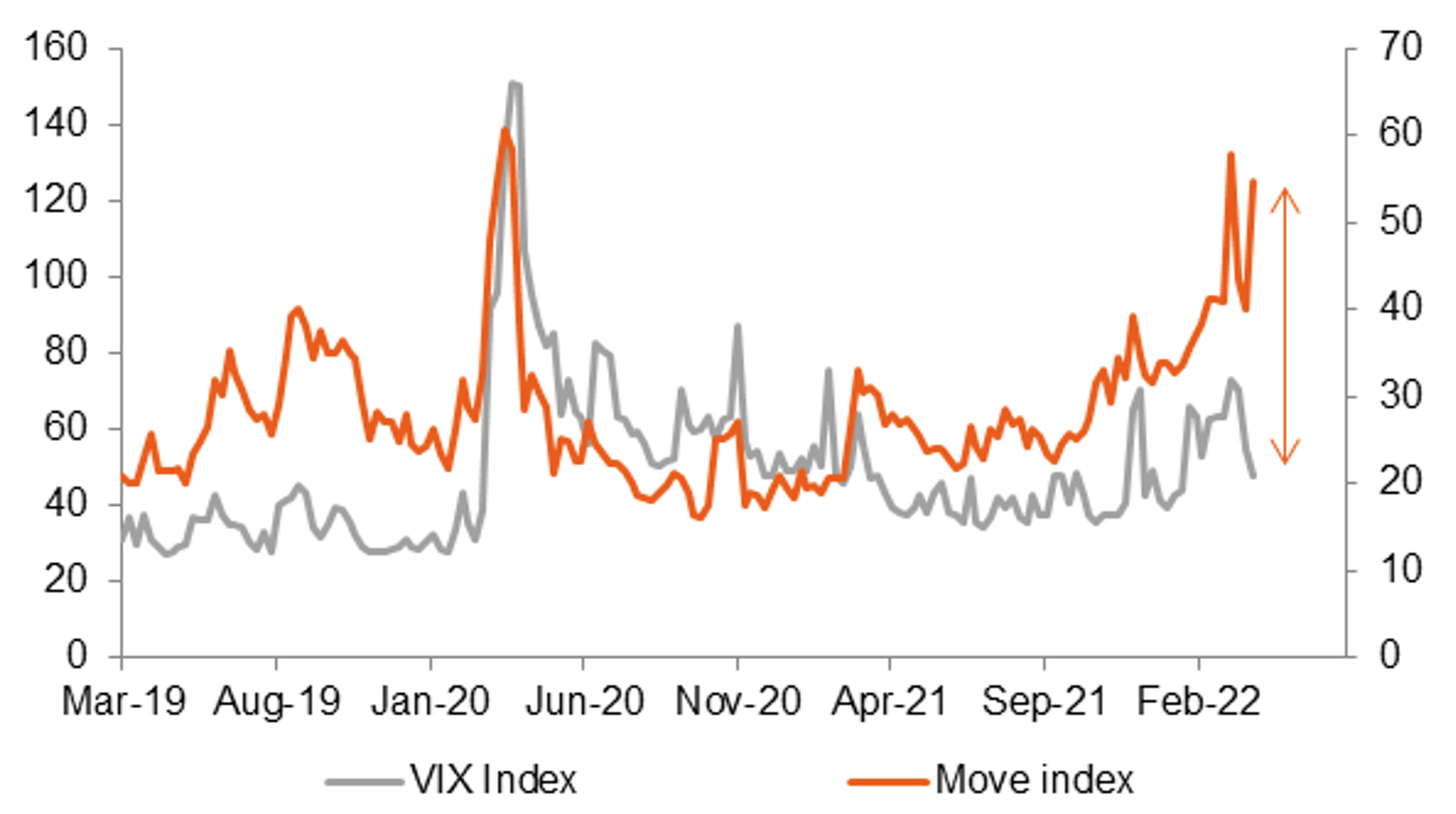 A nostro avviso, questa situazione riflette il focus prevalente dei mercati sulle recenti pressioni inflazionistiche, che hanno portato i Treasury statunitensi a prezzare ulteriori rialzi, mentre le azioni hanno raccolto afflussi positivi poiché forniscono copertura contro l’inflazione. La guerra attualmente in corso in Ucraina e il peggioramento dell’epidemia di Covid in Cina avranno tuttavia un effetto negativo sulla crescita globale. Un impatto che in questo momento è però ancora molto difficile valutare.
