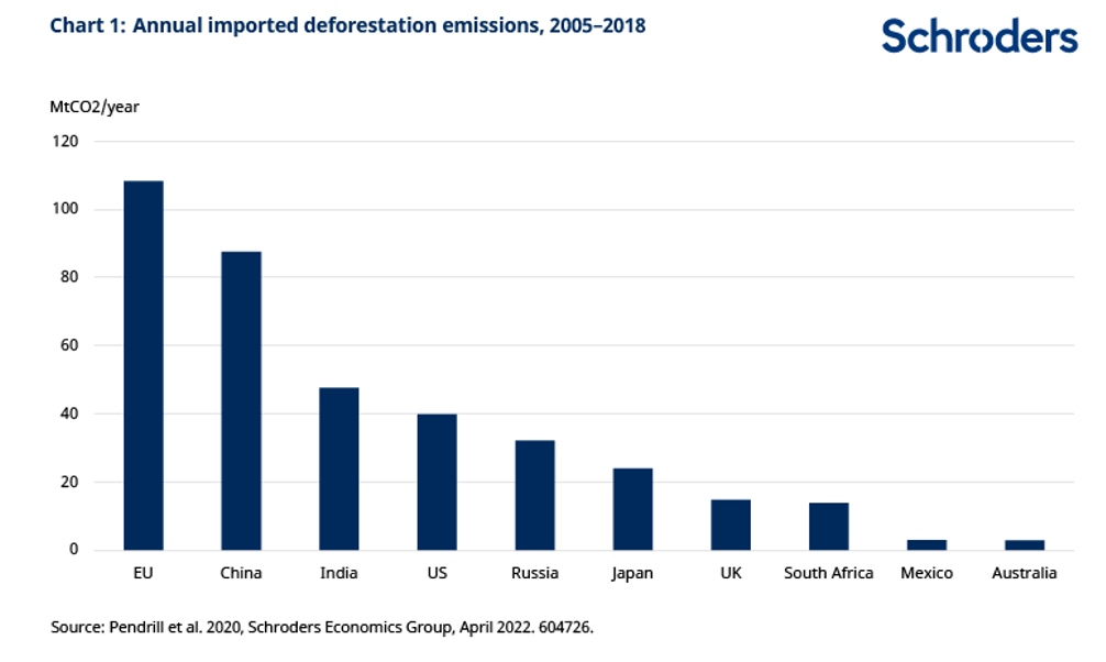 La nuova proposta normativa dell’UE deriva dall’impegno preso alla COP26 di Glasgow dello scorso novembre, in cui 100 leader di singoli Paesi si sono riuniti insieme a diverse aziende, tra cui Schroders, e si sono impegnati a porre fine alla deforestazione entro il 2030.