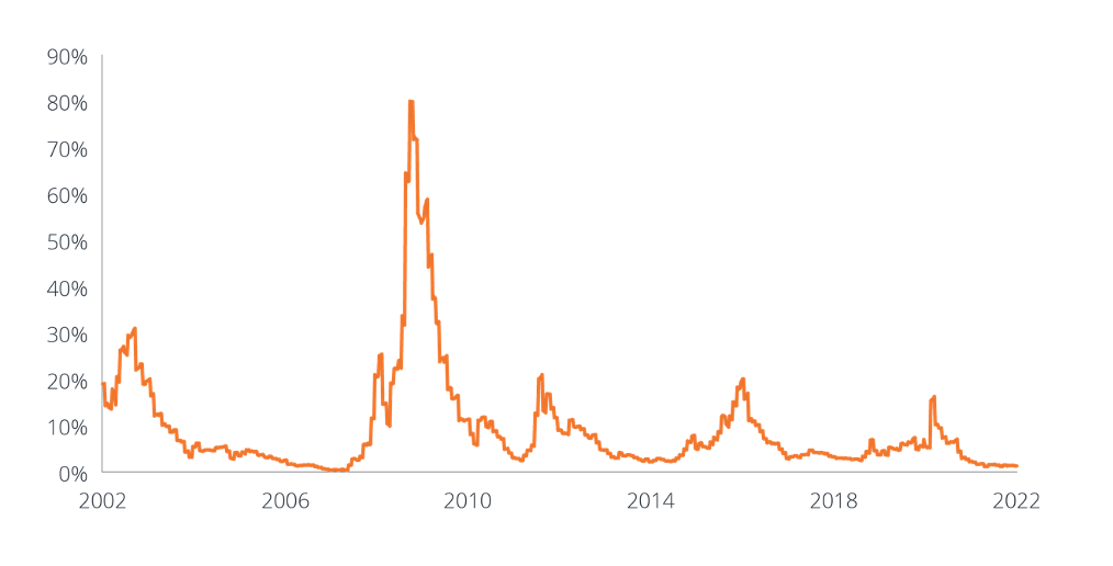 - Riduzione della propensione al rischio. Gli spread si ampliano quando la propensione al rischio diminuisce e gli investitori richiedono una maggiore compensazione, come nel caso dell’ulteriore incertezza sull’economia globale dovuta al conflitto tra Russia e Ucraina o dei perduranti timori legati alla pandemia di COVID in Asia.
