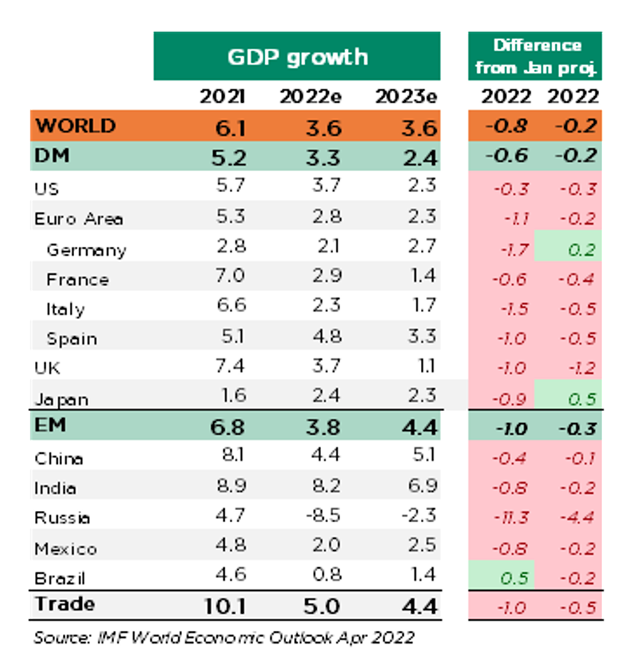 In primo luogo, la crescita economica globale non sarà così forte come previsto qualche mese fa. Mentre rimango fiducioso che una recessione sia tutt’altro che imminente, i rischi sono attualmente orientati al ribasso, soprattutto in Europa con le ripercussioni economiche della guerra in corso in Ucraina e il successivo ampliamento delle sanzioni. Gli attuali lockdown in Cina a seguito della riacutizzazione delle infezioni Covid pesano anch’essi sull’attività locale, mentre le persistenti pressioni inflazionistiche negli Stati Uniti stanno frenando la crescita dei salari e le spese di consumo, agendo così come un importante freno alla fiducia, nonostante un mercato del lavoro vivace. Le ultime proiezioni di crescita del FMI rilasciate la scorsa settimana non fanno che confermare il rallentamento della crescita che stiamo già vivendo.