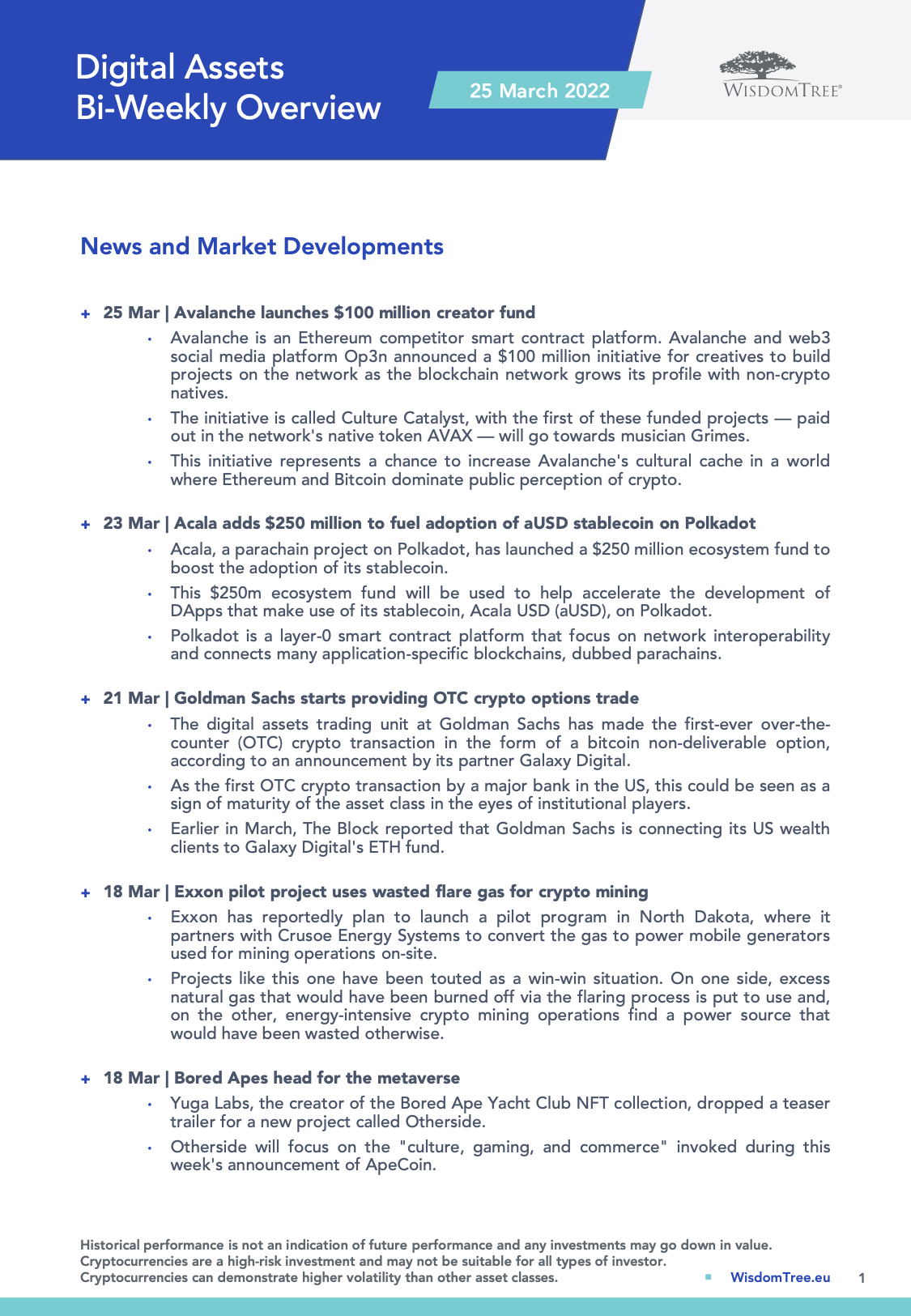 WisdomTree – BiWeekly “Digital asset” Overview – 25 mar 2022