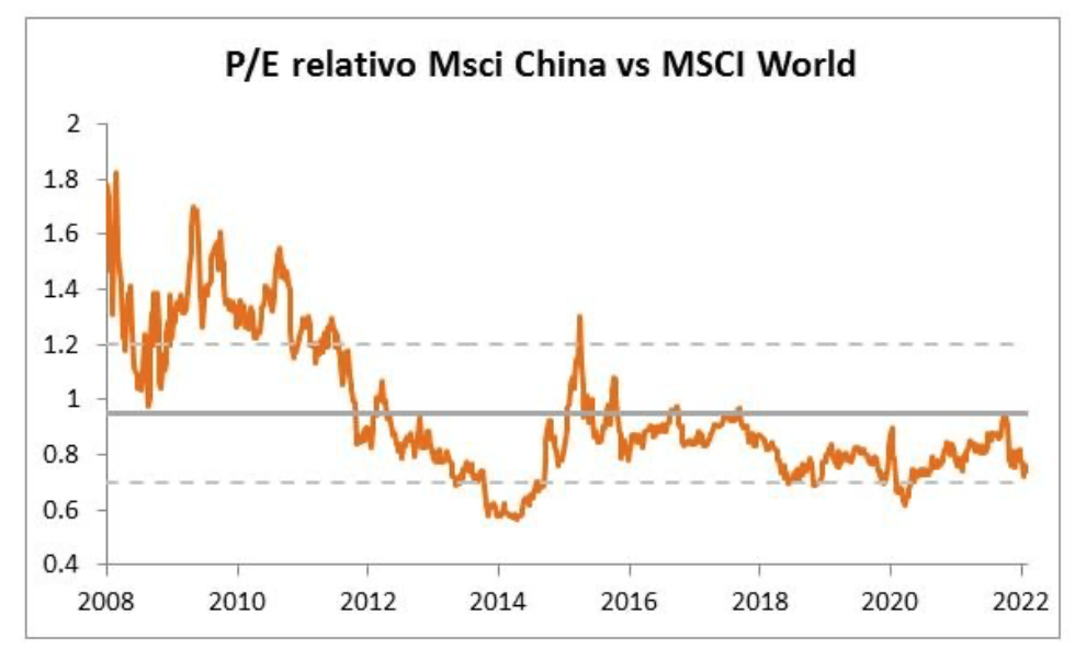 Tuttavia, negli ultimi mesi, le azioni cinesi hanno sottoperformato il mercato globale nel suo complesso. Nella prima metà di marzo, in particolare, le azioni cinesi sono rimaste indietro rispetto ai loro omologhi globali di circa 20 punti, spingendo l’indice cinese (MSCI China Index) in territorio fortemente negativo, con un crollo di circa il 30% dall’inizio del 2022 fino al 26/04. Da allora, le azioni cinesi hanno in parte recuperato terreno pur sottoperformando ancora l’indice MSCI World All Countries del 47,3% dal 2021 a oggi e del 14,1% dall’inizio del 2022.