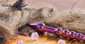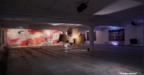 Il pubblico inizia ad affluire più veloce dal solito, forse scappando dalla pioggia che si riversa su Milano. Il borbottio della voci riempie le stanze da chiacchiere tra spettatori e artiste difronte alle loro opere. Sono arrivata al corridoio dove scopro il lavoro di Rebecca Picci, Pugnale della separazione, in argilla e resina dipinta con bomboletta spray dove sembra trarre spunti dal fantasy e dal gaming per riproporle in una chiave del tutto diversa.