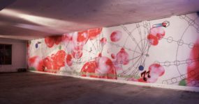 Allungo lo sguardo verso la fine del corridoio. Appeso in alto, subito dopo la fila che si è formata per prendere da bere, intravedo l’opera di Vittoria Toscana CIÓ CHE FACCIAMO