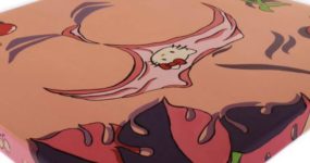 Nella stessa sala riconosco i quadri di Francesca Vanoli che ho visto stamattina su internet. Si tratta della serie intitolata Chewing-gum. Piccoli quadri dipinti a olio di all’incirca 5 x 5 centimetri. Sento a una coppia parlare a lungo su queste opere e decido soffermarmi con maggiore attenzione su ogni quadro quando ascolto le parole “manga” e “pornografia”. Non so esattamente chi le ha dette e in quale contesto ma stranamente mi avviano verso un’altra prospettiva. Ora sì. Le scopro sconcertati.