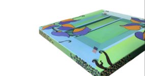 Proprio di fronte, sul lato opposto della stanza si trova l’opera di Livia Bertacca intitolata Alice was cutting her hair but something went wrong. Un mobile in legno in cui è stato pirografato un racconto scritto dell’artista che in qualche modo intuisco intimo e indecifrabile e per questo motivo del tutto accattivante.