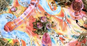 collettiva, alta e bassa dove le parole più utilizzate sono “intreccio”, “legame”, “rapporto”,“connessione”, “convivenza”, “mix” o “esperimento” e i loro IG-feed schizofreniche sequenze in cui opere d’arte appena realizzate sono unite a references estetiche in forma di meme, selfies sfocati, flyers in grafiche new dark-goth, recondite scene da film anni ’80 e ’90 e ancora inesauribili tempeste di stickers, glitter e icone fantasy fuse in atmosfere perennemente sweetly-ugly.”