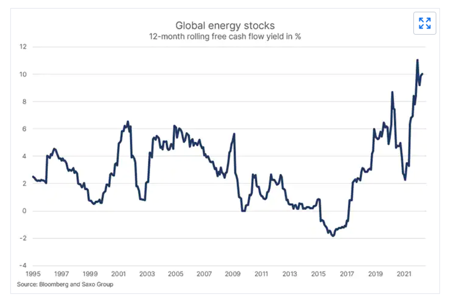 C’è poi un altro dato da sottolineare: il rendimento del flusso di cassa è stato del 10% ad aprile sulle società energetiche globali rispetto al 6% dell’MSCI World.