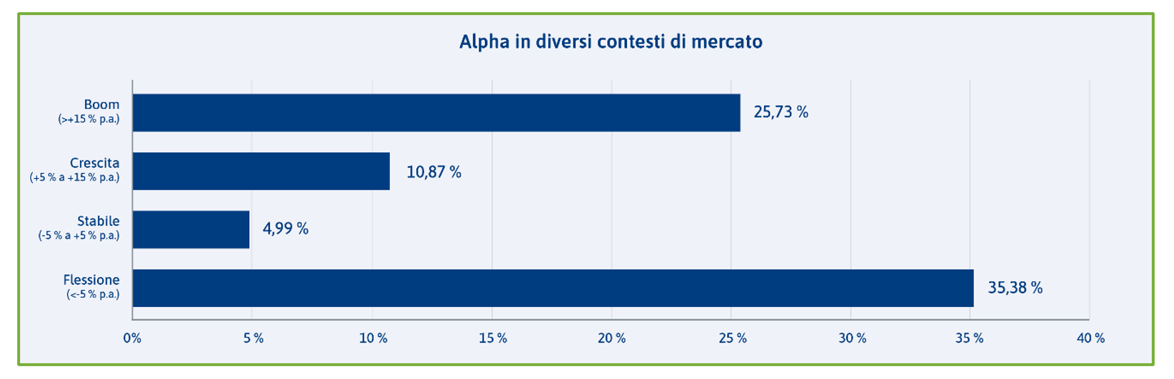 Un alpha significativo in tutte le fasi e i segmenti di mercato, soprattutto in contesti di crisi