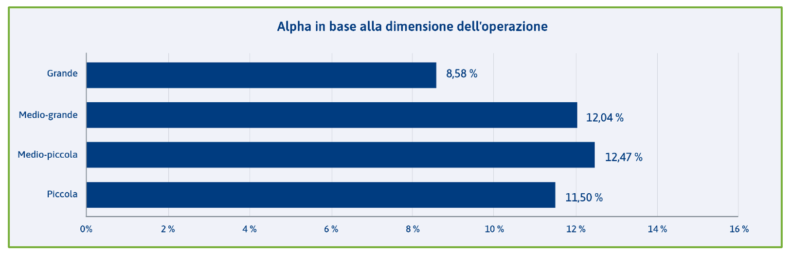Un’analisi rispetto alle dimensioni delle operazioni mostra un leggero vantaggio delle transazioni di medie dimensioni rispetto a quelle con volumi particolarmente elevati o ridotti.