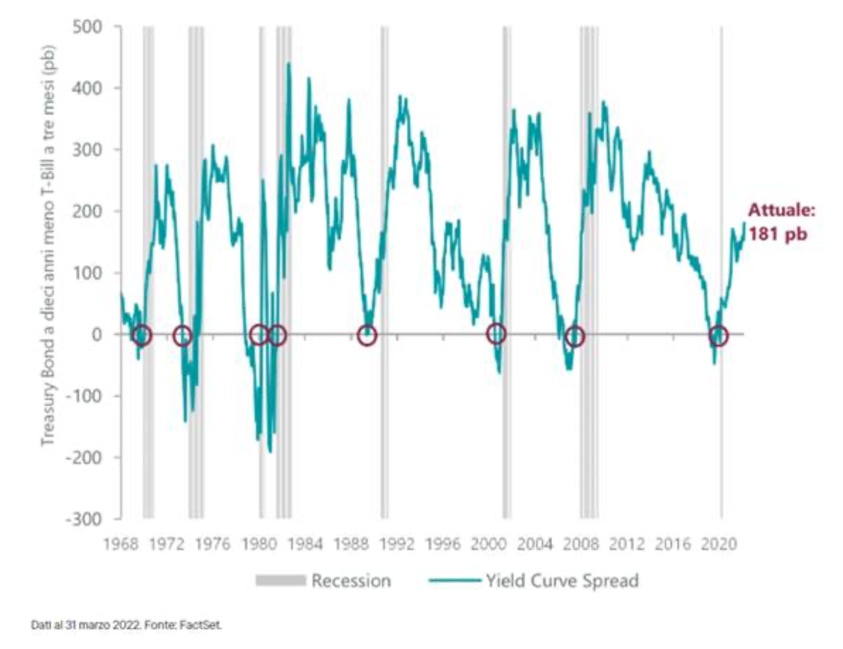Figura 1: La curva del rendimento 3 mesi/10 anni non lampeggia sulla recessione