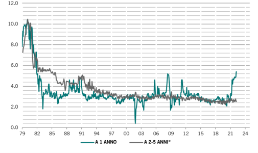 Fonte: CEIC, Refinitiv, Pictet Asset Management. Dati dal 01/02/1979 al 01/04/2022. *Aspettative di inflazione coerenti con le aspettative a 1 anno e a 5 anni.