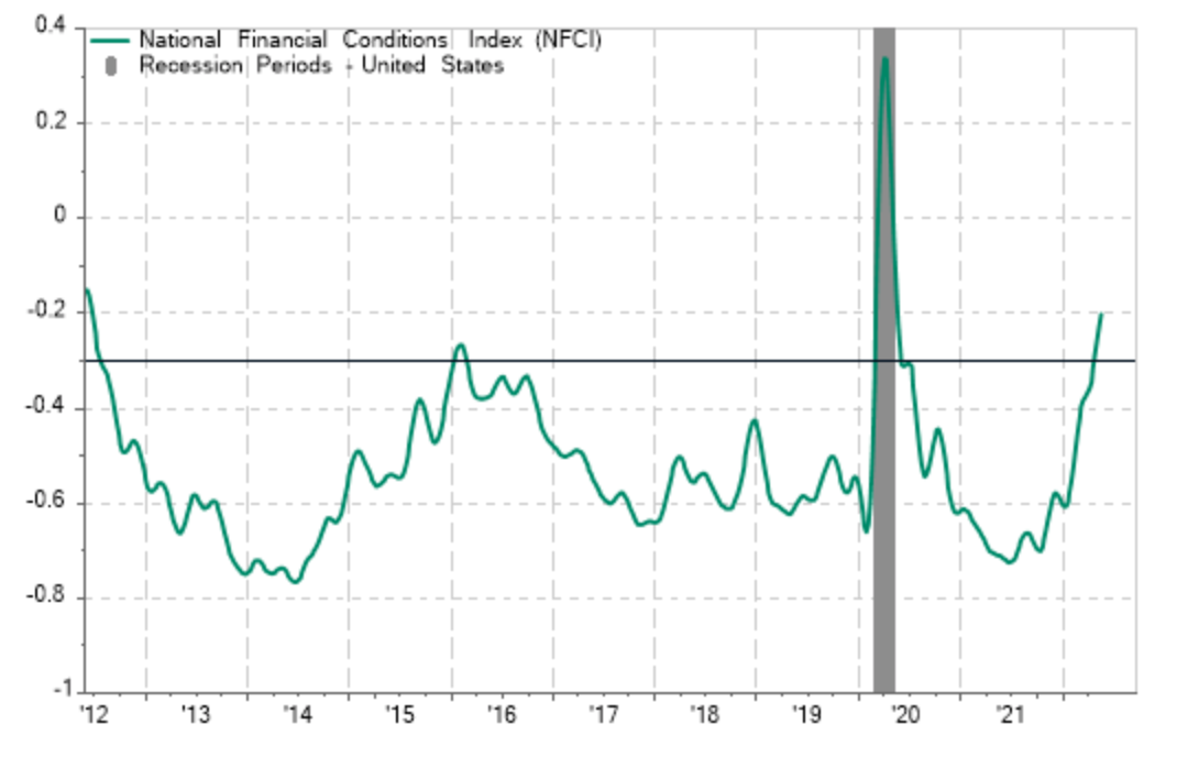 Le condizioni finanziarie si sono significativamente inasprite secondo il Chicago Fed National Financial Conditions Index (NFCI)