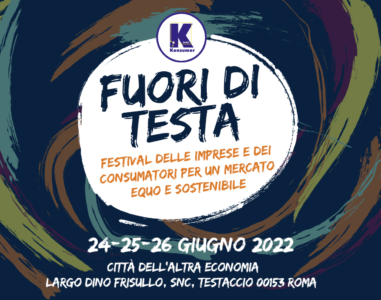 Il Festival “Fuori di Testa” è organizzato da Konsumer Italia, associazione di consumatori, presso la Città dell’Altra Economia, largo Dino Frisullo (quartiere Testaccio, ex Mattatoio).