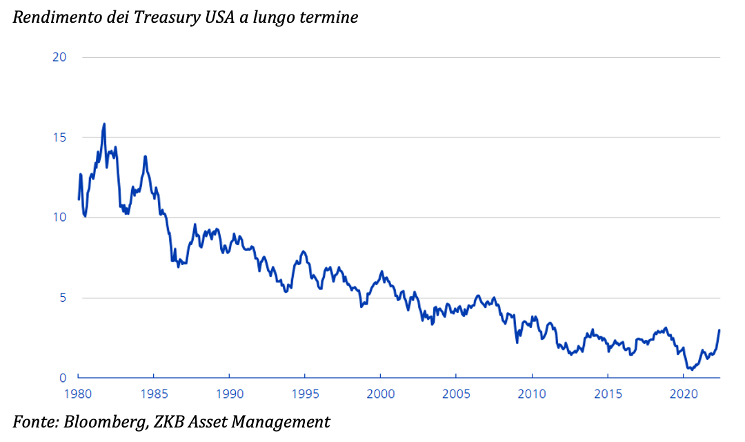 Seguirà ora una fase di aumento dei tassi di interesse che durerà analogamente 35 anni? Questo non succederà per diversi motivi. La lunga tendenza al ribasso era stata caratterizzata da megatrend mondiali. La globalizzazione, la digitalizzazione e lo sviluppo demografico (più forza lavoro) hanno esercitato una pressione continua sull’inflazione. Una simile combinazione di fattori non si ripeterà.