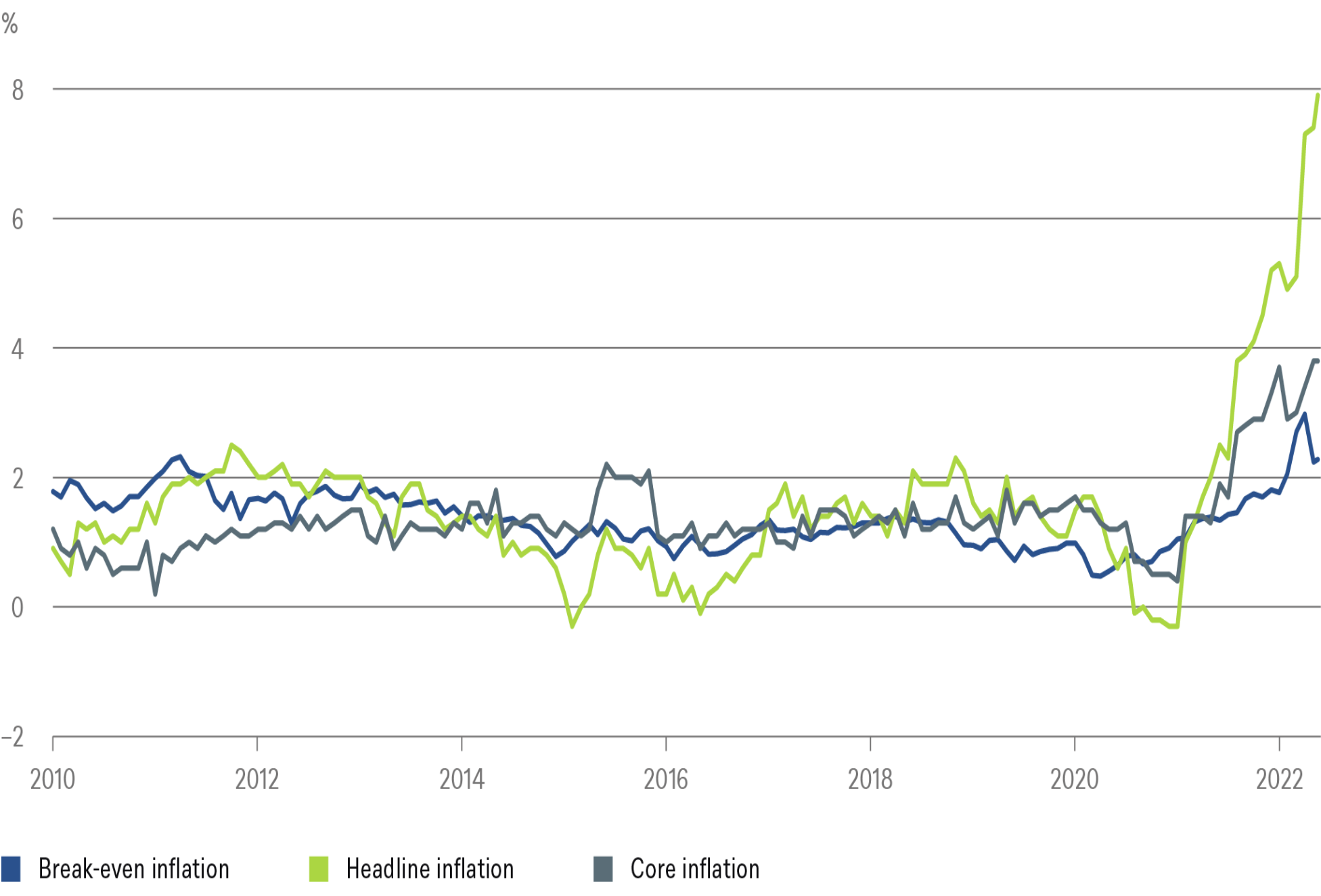 Ma non sono paralleli al tasso di inflazione nominale molto più elevato che sta attualmente dominando il quadro globale. Spinta dalla guerra in Ucraina, dalle strozzature nelle forniture e dai conseguenti squilibri tra domanda e offerta, l’inflazione sta attualmente preoccupando consumatori, politici, gestori patrimoniali e banchieri centrali. Ha anche fatto salire le aspettative di inflazione implicita a 10 anni: da molto meno del 2% prima dell’invasione russa al 3% alla fine di aprile. Si tratta di un balzo significativo in un periodo di tempo relativamente breve, che allarma soprattutto i banchieri centrali, tradizionalmente molto attenti alle aspettative di inflazione.