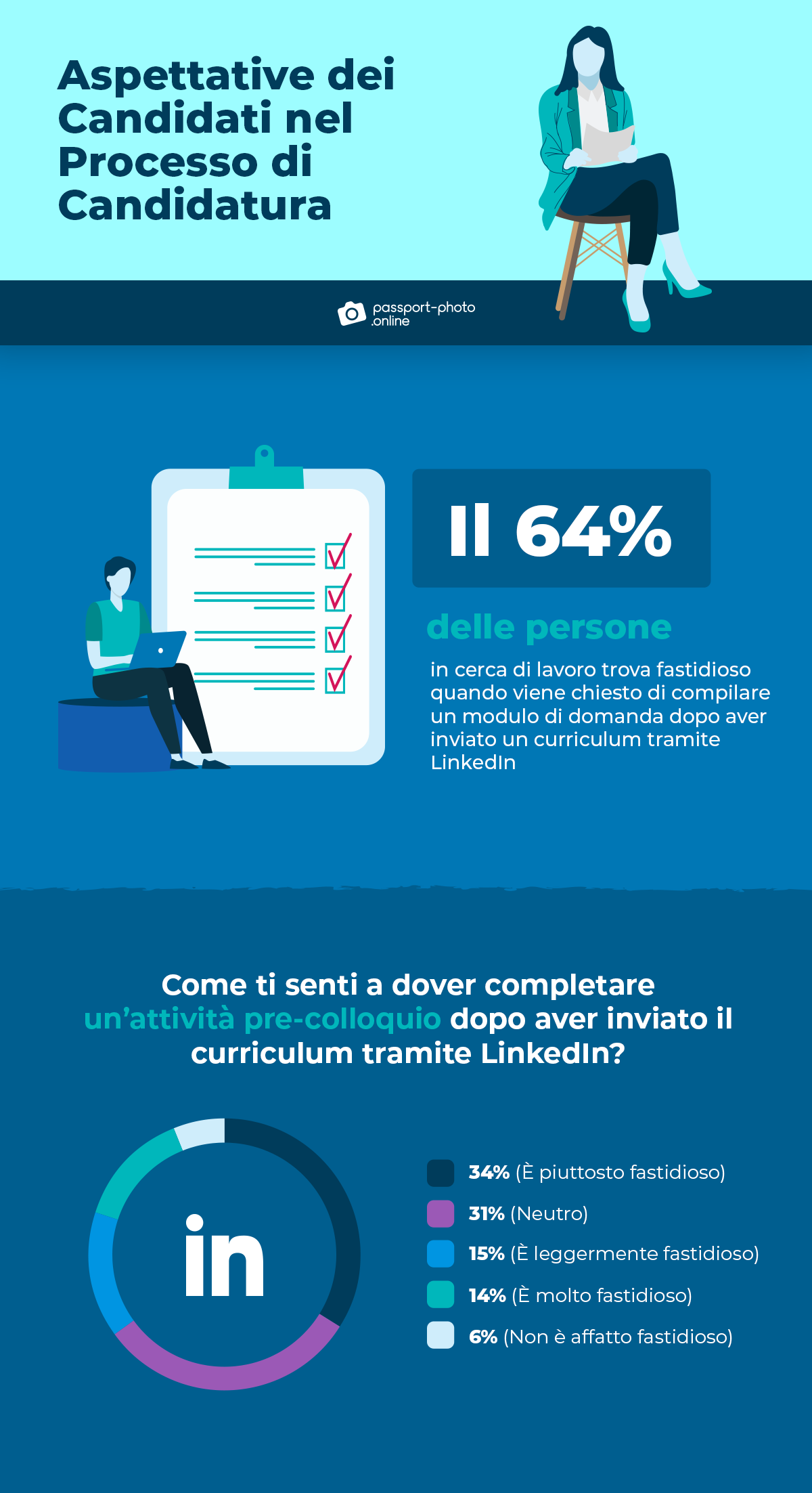- Ben il 64% delle persone in cerca di lavoro trova fastidioso quando viene chiesto di compilare manualmente un modulo di domanda separato dopo aver inviato il curriculum tramite LinkedIn.