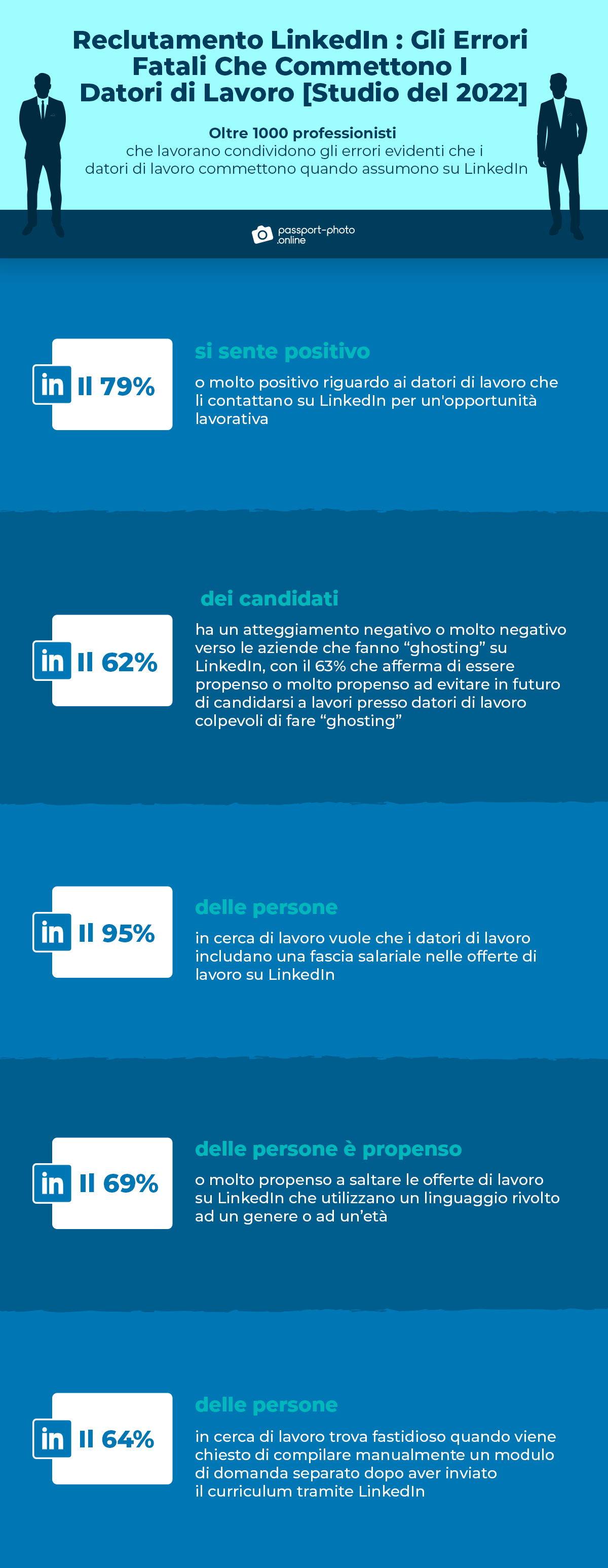 Per questo, noi di Passport-Photo.Online, abbiamo deciso di intervistare oltre 1.000 professionisti che lavorano e scoprire gli errori fatali dei datori di lavoro quando assumono su LinkedIn per aiutare le aziende a riequilibrare i loro sforzi di reclutamento.