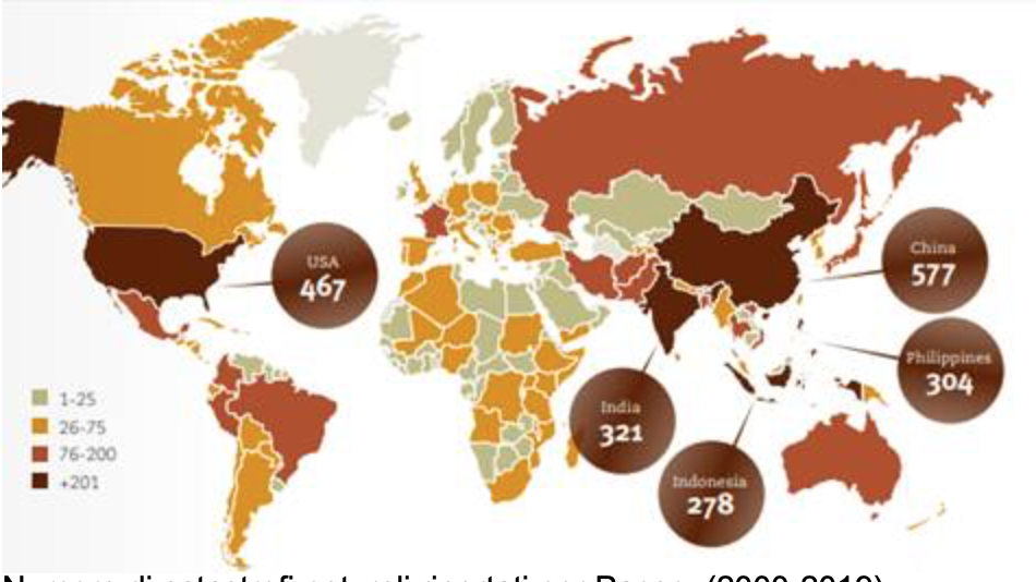 Numero di catastrofi naturali riportati per Paese. (2000-2019).