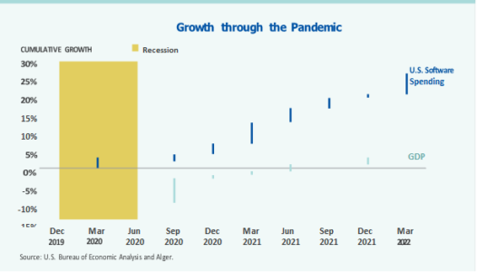 - Un esempio è quello del mercato dei software durante la pandemia COVID-19. Essendo un settore in crescita secolare, ha continuato a espandersi nonostante la profonda recessione. Perché? Perché le aziende riconoscono che la trasformazione digitale è un imperativo aziendale. Microsoft ha recentemente previsto che la spesa tecnologica raddoppierà in percentuale rispetto al PIL entro la fine del decennio. Nel nostro articolo “La forza duratura dell’innovazione” abbiamo mostrato altri esempi di come ciò si sia verificato nell’ultimo secolo.