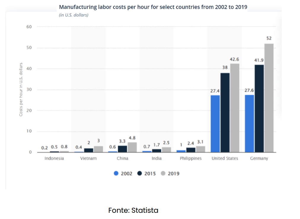 Il reshoring comporta per le aziende un generale aumento iniziale dei costi di produzione dovuto principalmente al maggior costo del lavoro, storicamente in crescita: