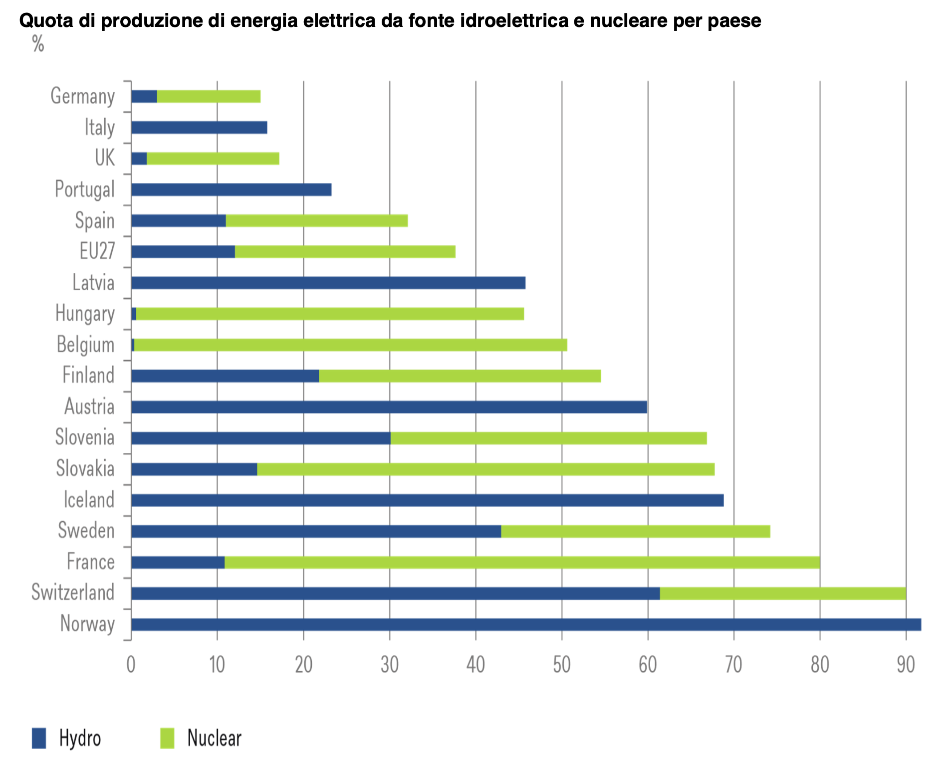 Il nostro grafico della settimana mostra la quota di energia elettrica prodotta dal nucleare e dall’idroelettrico in Europa. Il grafico rivela che Norvegia, Islanda, Svizzera e Austria fanno particolare affidamento sull’energia idroelettrica, mentre il nucleare spicca soprattutto in Francia, Ungheria e Belgio. Proprio mentre i Paesi europei cercano di alleviare le carenze di gas naturale aumentando la produzione di energia elettrica da carbone, ad esempio in Germania e nei Paesi Bassi, potrebbe essere necessario pagare un costo ambientale simile per mantenere in funzione le centrali nucleari in Paesi come la Francia. Basti pensare alla siccità del 2003 quando, a fronte della chiusura dell’equivalente di quattro reattori nucleari o di 4.000 MW di capacità produttiva a causa della siccità, il governo francese allentò le regole che consentivano il ritorno dell’acqua dei fiumi a temperature superiori a quelle normalmente consentite. Da allora l’invecchiata flotta atomica francese è diventata sempre più soggetta a interruzioni di ogni tipo.