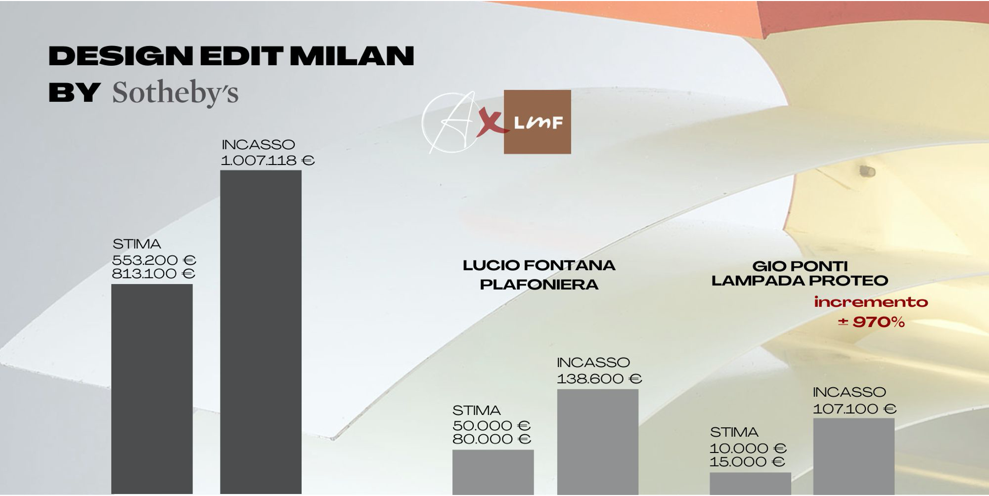 Tra tutte, spicca la prima asta italiana di Sotheby’s interamente dedicata al design, conclusasi il 27 giugno con un enorme successo. Design Edit Milan, svoltasi a Milano presso Palazzo Serbelloni, ha infatti totalizzato un incasso di €1.007.118 (da una stima iniziale di 553.200 – 813.100 euro), raddoppiando le aspettative.
