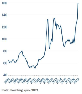 Figura 2: un nuovo picco dei prezzi dei generi alimentari su scala mondiale (1990-2022)
