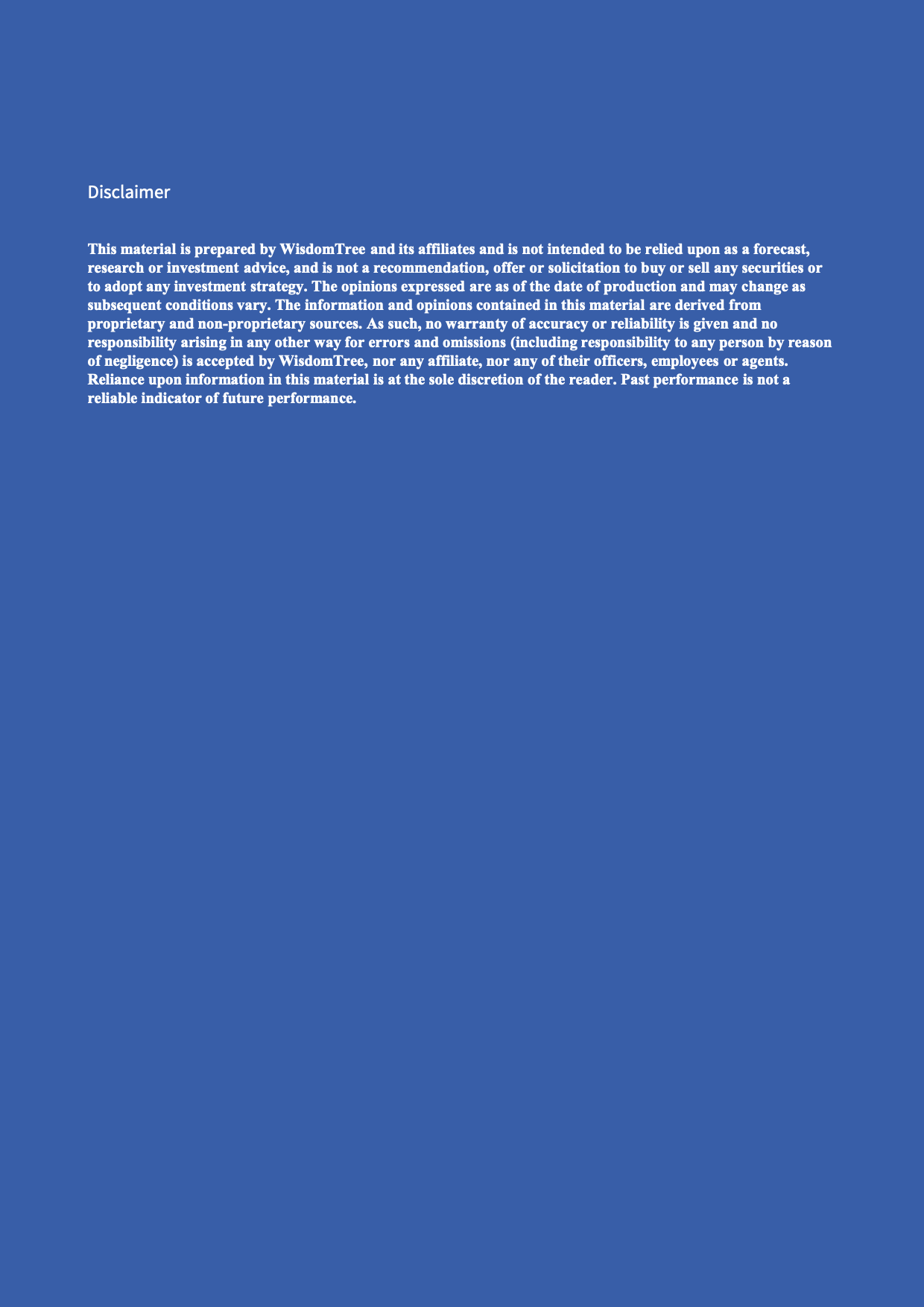 L’area ad accesso limitato è riservata ai clienti professionali. Le informazioni contenute nell’area ad accesso limitato non sono destinate a persone che si trovano negli Stati Uniti d’America e non devono essere da essi utilizzate. Accedendo all’area ad accesso limitato l’utente conferma di essere un cliente professionale ai sensi dell’Allegato II alla Direttiva 2014/65/UE del Parlamento europeo e del Consiglio del 15 maggio 2014 relativa ai mercati degli strumenti finanziari. Accedendo all’area ad accesso limitato l’utente conferma di essere d’accordo con la politica dei cookie. Se non si è d’accordo con queste condizioni non accedere al sito né alle eventuali pagine collegate. Questa area, al'interno del sito Web LMF Lamiafinanza, e il relativo contenuto sono stati forniti da WisdomTree UK Ltd autorizzata e disciplinata dalla FCA (Financial Conduct Authority) e da WisdomTree Ireland Ltd, autorizzata e disciplinata dalla Banca Centrale d’Irlanda (CBI) (insieme, “WisdomTree”). Il prezzo di qualsiasi azione o il valore di un investimento in Exchange-Traded Product (ETP) potrebbe fluttuare verso l'alto o verso il basso e un investitore potrebbe non recuperare la somma investita. Le precedenti performance non sono indicatori affidabili di quelle future. Questo materiale non deve essere inteso come una previsione, una ricerca o una consulenza in materia di investimento e non è un consiglio, né un'offerta o un invito ad acquistare o a vendere prodotti o strumenti finanziari o ad adottare qualsiasi strategia di investimento. Fare clic qui per leggere l'Esclusione di responsabilità completa.