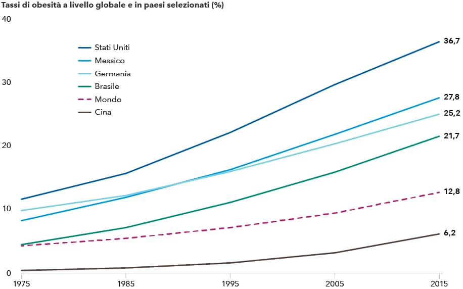 Fonti: Capital Group, Organizzazione Mondiale della Sanità. Dati aggiornati al 2016.