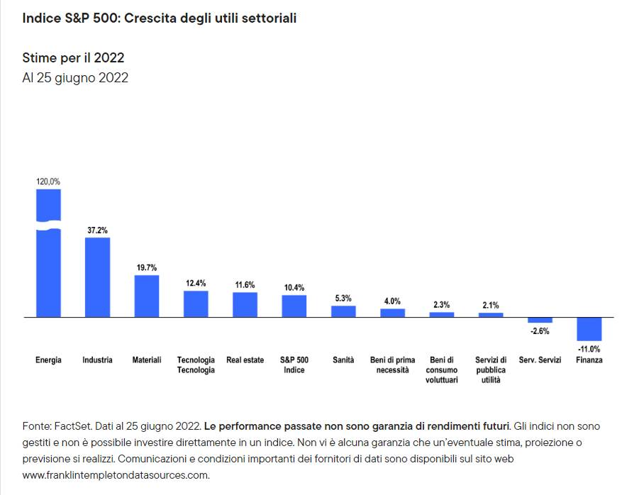 Negli scorsi sei mesi le valutazioni hanno subito una rapida contrazione; il P/E prospettico dell’S&P 500 è tornato ai livelli pre-COVID-19 e scambia a circa una deviazione standard sotto la media degli ultimi cinque anni. I prezzi delle azioni hanno risentito in larga misura di compressioni multiple: il rialzo dei tassi di interesse ha influito sui tassi di sconto e, quindi, sull’ammontare che gli investitori sono disposti a pagare per utili futuri. Tale situazione è comprensibile fino a un certo punto, tuttavia occorre sottolineare che il potenziale di redditività e utili di molte società resta intatto e che in diversi settori gli utili danno prova di resilienza. Riteniamo che la recente volatilità abbia creato interessanti opportunità per gli investitori con un orizzonte di lungo periodo in grado di guardare oltre le turbolenze del momento e puntare alla crescita negli anni a venire.