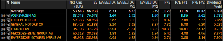 In confronto, Mercedes è valutata a un rapporto EV/EBITDA previsto per il 2023 di 1,46, BMW a 6,26 e Ferrari a 18,13