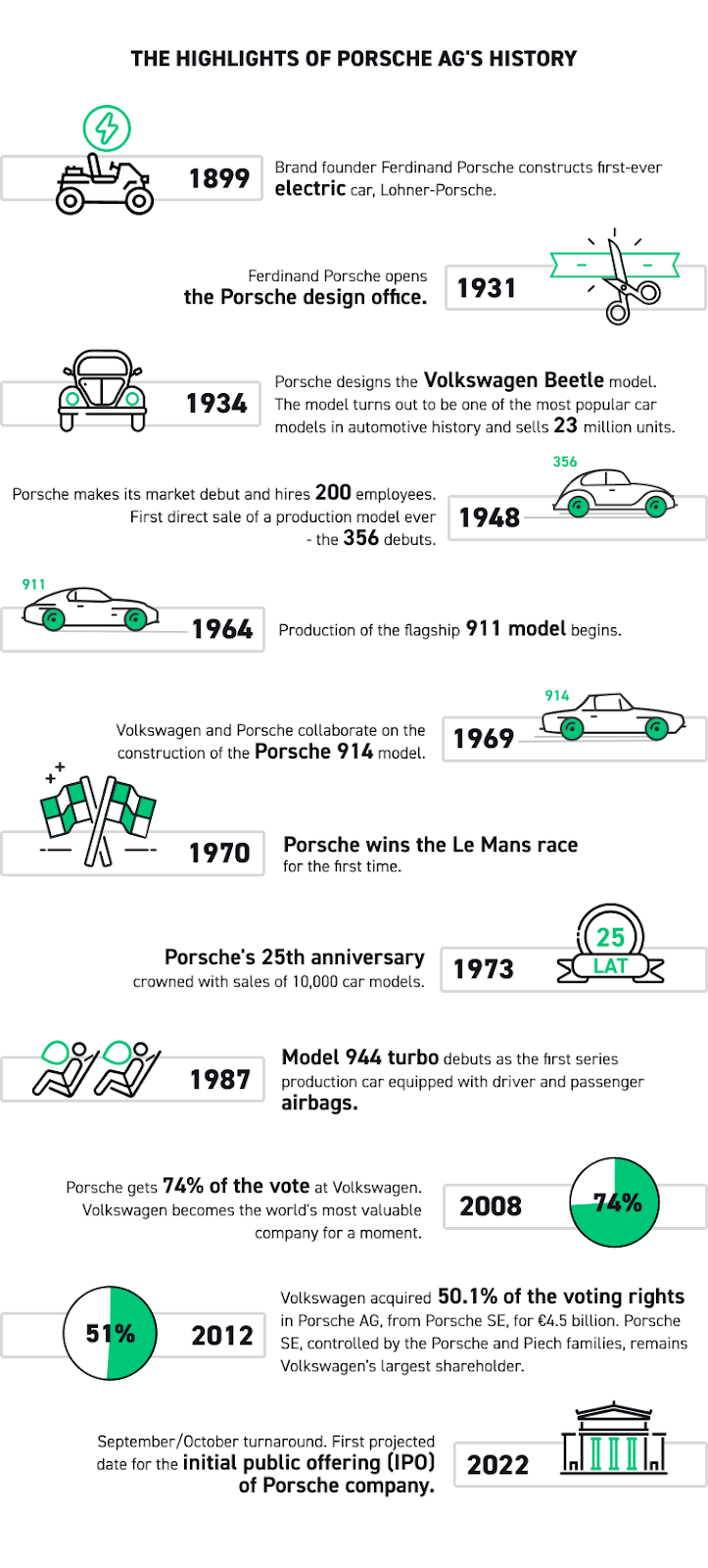 Di seguito un’infografica che mostra i punti salienti della storia di Porsche AG: