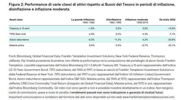 Negli Stati Uniti l’inflazione si mantiene a livelli relativamente contenuti dal 1983. Fino a poco tempo fa, si aggirava intorno al 2% su base annua. Gli effetti di un’inflazione elevata sulla salute di un’economia sono ben noti. L’inflazione inattesa danneggia i creditori, poiché otterranno un rimborso di valore inferiore. È distruttiva per gli investimenti, perché disincentiva i fornitori di capitali (i creditori) dal prestare denaro. Meno noti, tuttavia, sono gli effetti degli shock inflazionistici (variazioni dell’inflazione corrente o delle aspettative inflazionistiche) sulle classi di attivi, più che sulle economie. Qui ci concentriamo su alcune delle lezioni chiave che abbiamo appreso dalla storia.