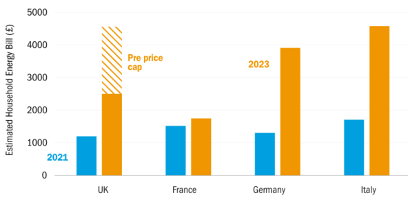 Le precedenti prospettive del Regno Unito erano simili a quelle del resto d’Europa: una crisi guidata dai prezzi dell’energia che avrebbe visto l’inflazione schiacciata dalla recessione che l’avrebbe accompagnata. L’annuncio del governo di sussidi al prezzo del carburante e di tagli alle tasse dovrebbe scongiurare la peggiore delle crisi dei consumatori e l’imminente recessione.