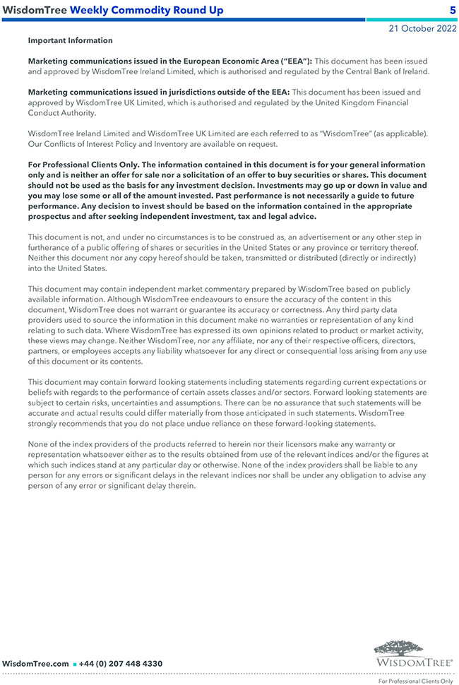 WisdomTree – Weekly “Commodity” Round Up – 21 oct 2022