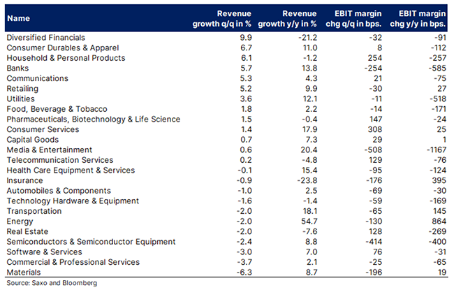 Se esaminiamo più a fondo i 24 gruppi industriali, notiamo che i settori legati ai beni di consumo durevoli, abbigliamento, prodotti per la casa e per la persona hanno registrato la crescita dei ricavi più elevata t/t, fatta eccezione per i titoli finanziari diversificati vincitori in rialzo del 9,9% t/t.