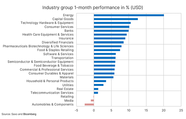 Sebbene le società energetiche abbiano registrato un calo dei ricavi t/t nel terzo trimestre e un margine EBIT leggermente inferiore, il settore si distingue ancora come quello di gran lunga più performante. È, infatti, l’unico ad essere salito in valuta americana negli ultimi 12 mesi.