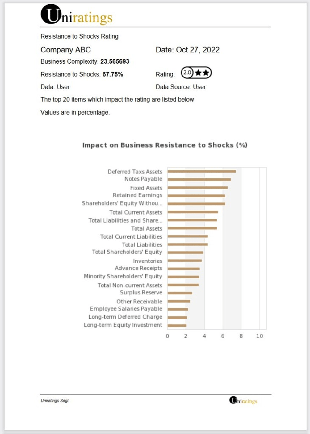 Una rapida occhiata al rapporto di resilienza mostra il rating effettivo – due stelle nell’esempio sopra – e un grafico a barre, che classifica le voci di bilancio che influiscono maggiormente sulla resilienza.