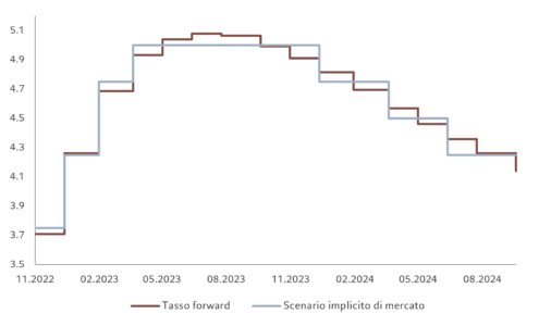 Di conseguenza, i mercati stanno già scontando il raggiungimento di un picco critico prossimo al 5% sui Fed fund durante la prima metà del 2023, seguito poco dopo da un ritorno all’allentamento monetario (si veda la Fig. 1). Alla luce delle persistenti pressioni sui prezzi e della contrazione del mercato del lavoro, questa pare essere una lettura eccessivamente ottimistica della velocità con cui l’inflazione potrebbe rientrare nel target prefissato dalle banche centrali.