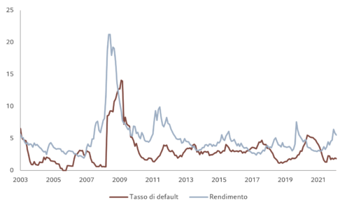 *Metodologia spiegata in dettaglio negli Special Comment di Moody’s: “Introducing Moody’s Credit Transitions Model” e “A Cyclical Model of Multiple-Horizon Credit Rating Transitions and Default”, agosto 2007. Fonte: Moody’s. Dati dal 31/07/2003 al 31/08/2022.