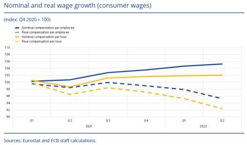 In quarto luogo, la natura differita dell’adeguamento del livello dei salari significa che i salari nominali non possono adeguarsi rapidamente all’aumento cumulativo del costo della vita, ma si svilupperanno nell’arco di diversi anni. A sua volta, ciò significa che, anche dopo che i fattori energetici e pandemici svaniranno dalle misure di inflazione, l’inflazione salariale sarà un motore principale dell’inflazione dei prezzi nei prossimi anni. Più che mai, ciò aumenta l’importanza di monitorare da vicino l’andamento dei salari in modo tempestivo, sia attraverso i rilevatori salariali ad alta frequenza che sono stati sviluppati nell’Eurosistema, sia le prove disponibili dagli indicatori ad alta frequenza del settore privato.