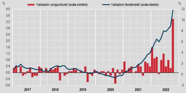 Ad ottobre l’inflazione è arrivata quasi al 12%, le retribuzioni contrattuali stanno crescendo invece dell’1%, questo significa che gli stipendi fissi stanno perdendo ben l’11% del loro potere di acquisto, un quadro economico che colpisce soprattutto le famiglie più povere, quindi è un’inflazione che sta allargando le diseguaglianze, che acuisce la crisi sociale, perdono potere di acquisto coloro che hanno redditi fissi, i lavoratori dipendenti perché le pensioni vengono poi adeguate all’inflazione.